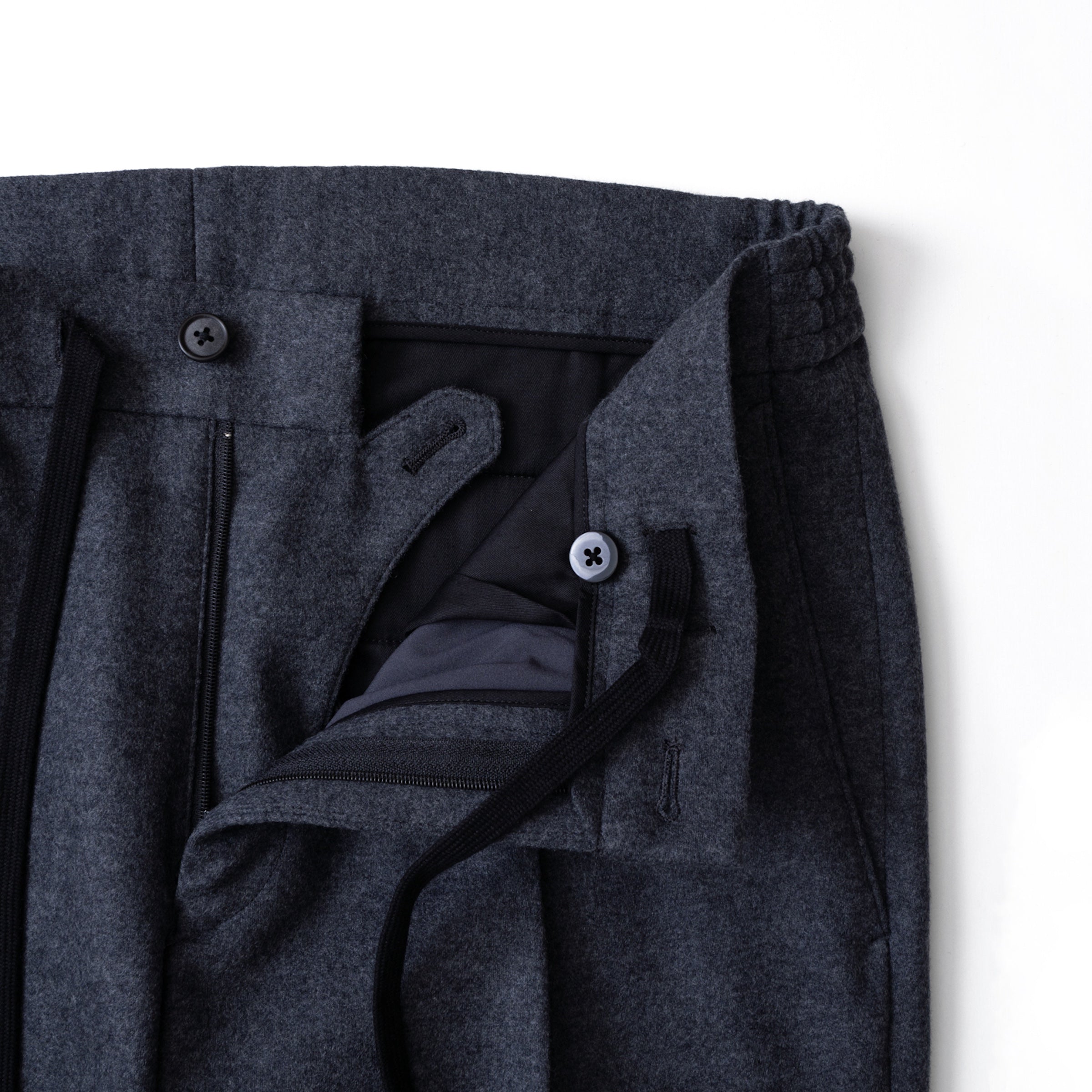 Optima 16.5 Merino Wool Jersey サイドギャザースリムテーパードスラックス Charcoal Gray