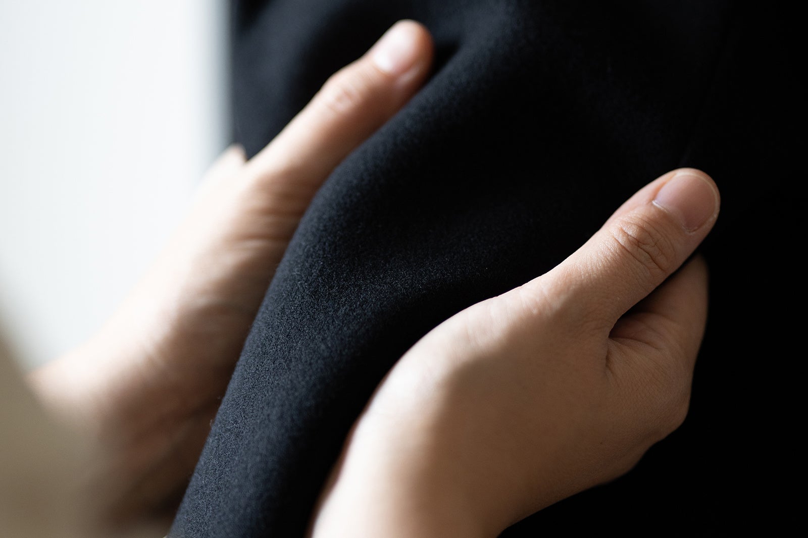 スーツ用には、ハリとコシを残しながらも、わずかに毛羽を立たせ空気を含んだ弾むような風合いが特徴の生地を。