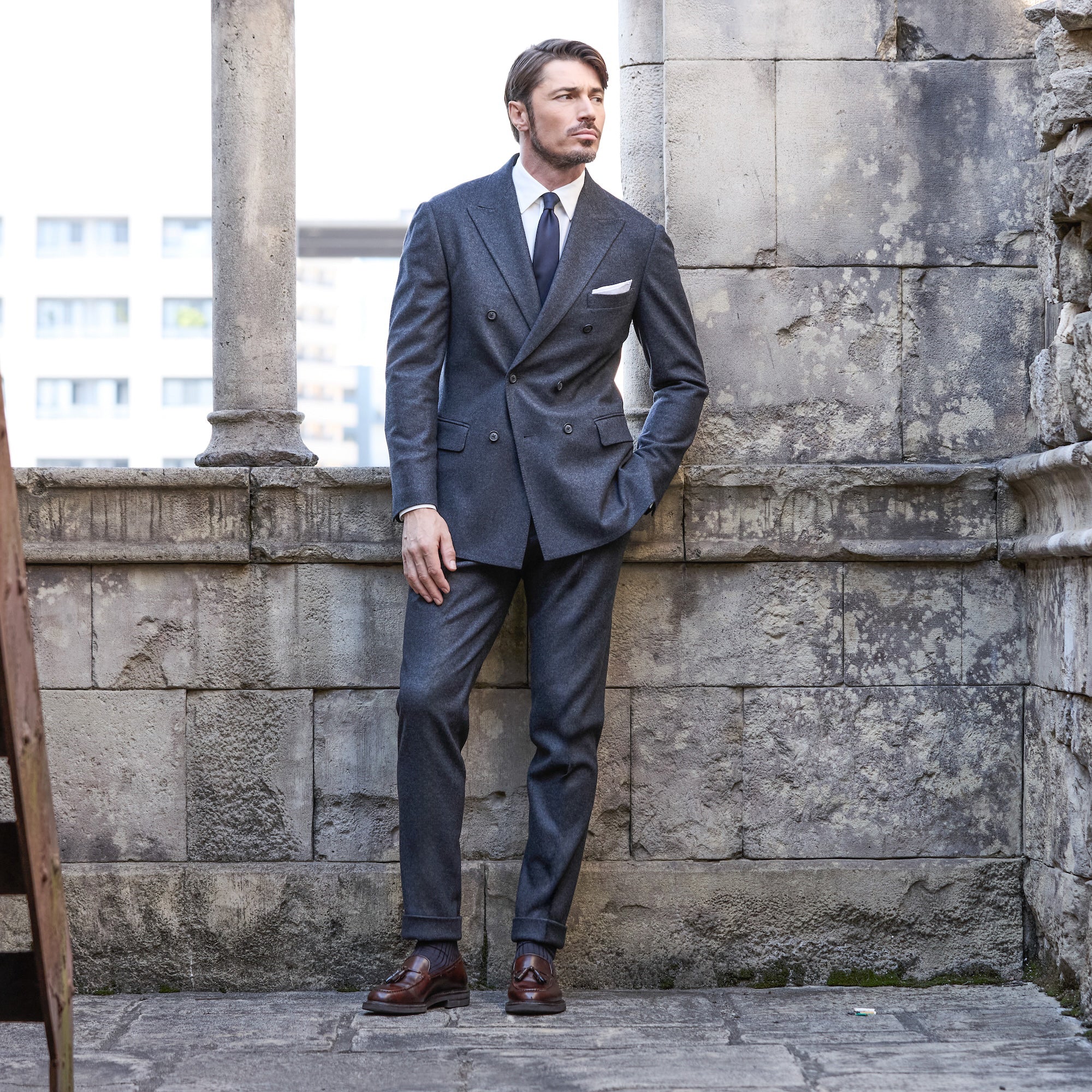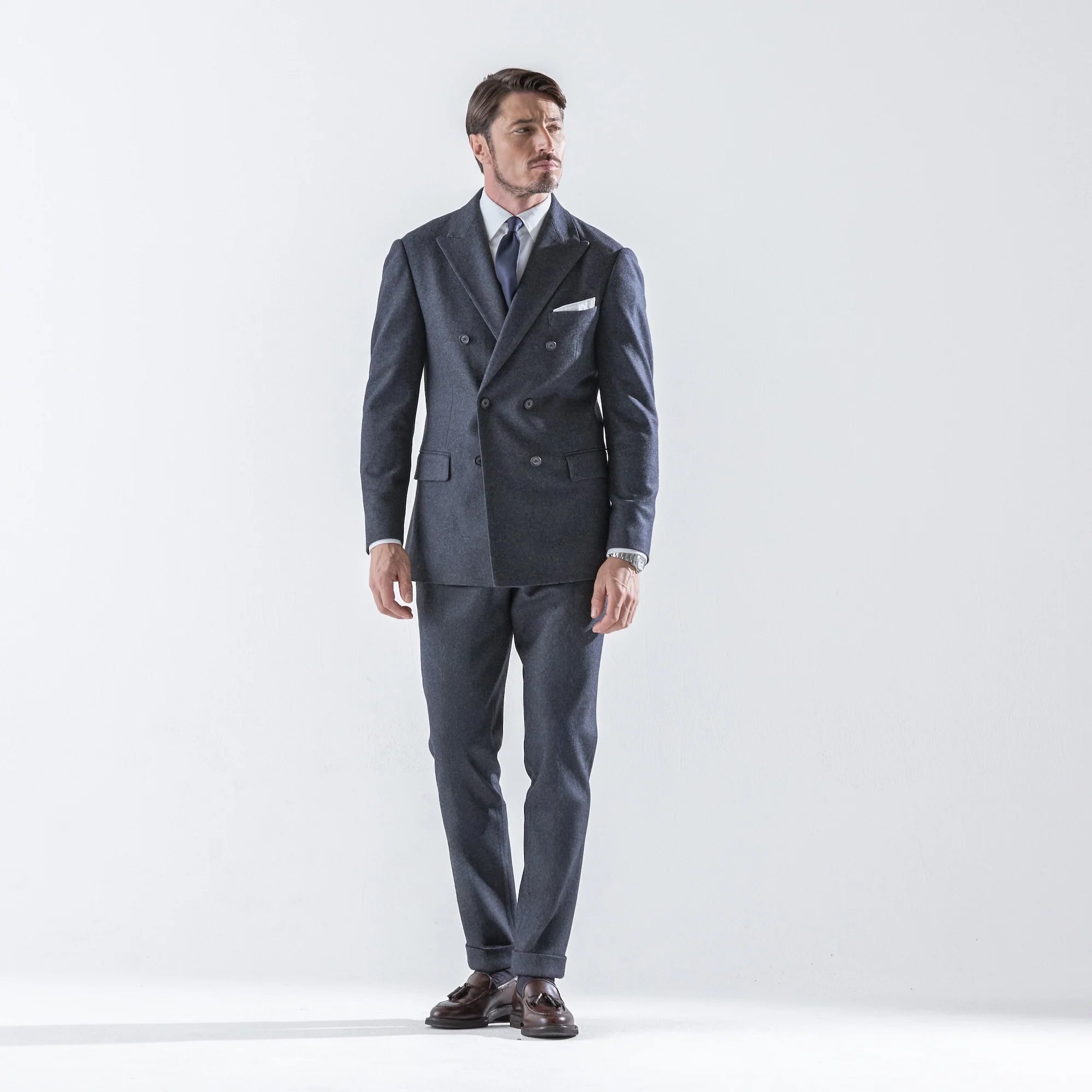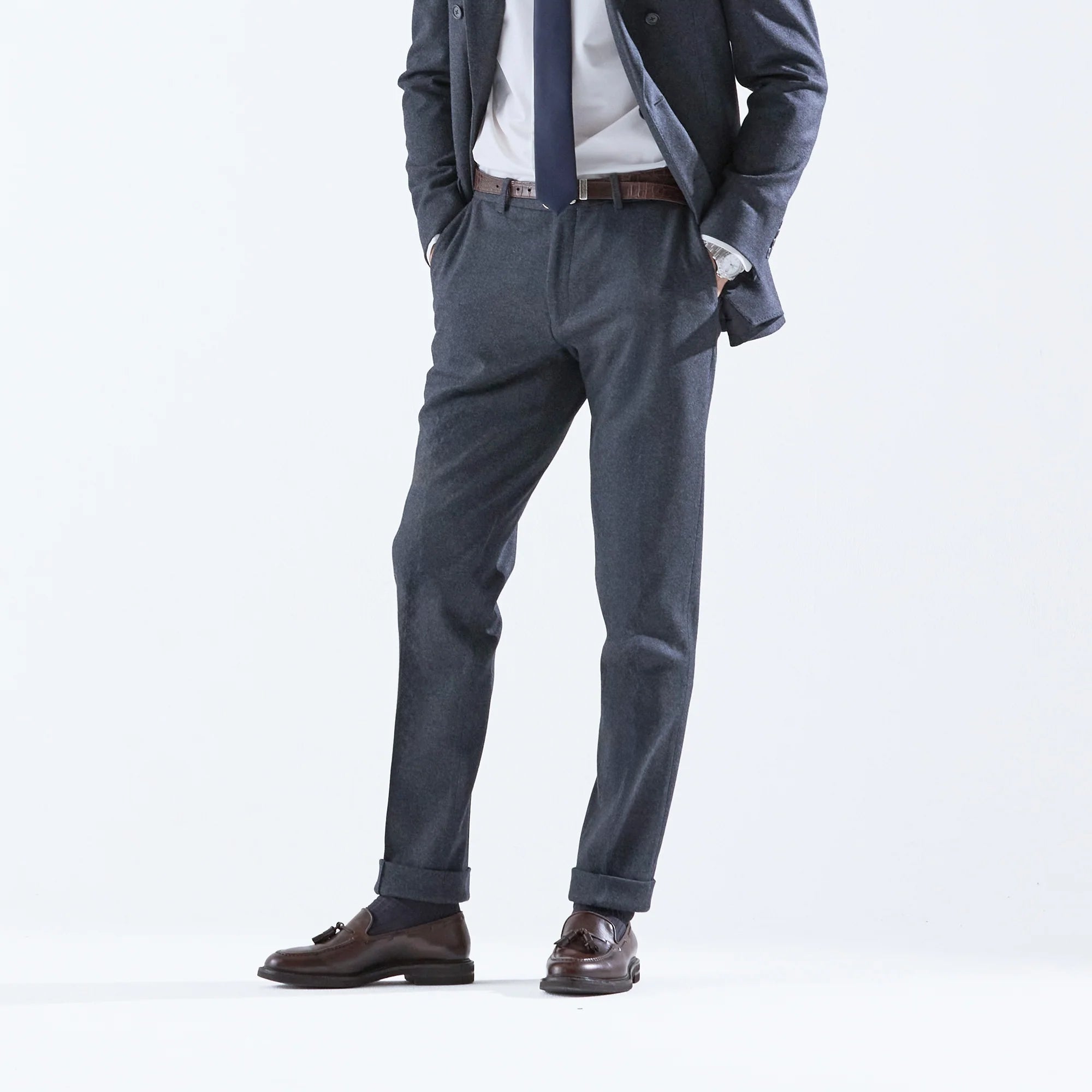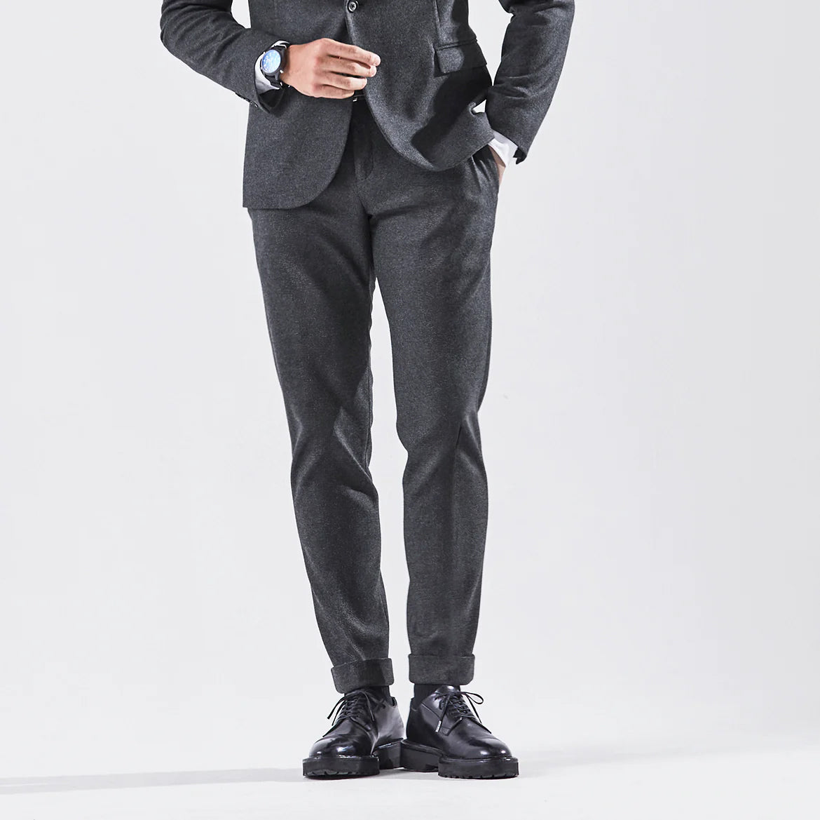 Optima 16.5 Merino Wool Jersey サイドギャザースリムテーパードスラックス Charcoal Gray